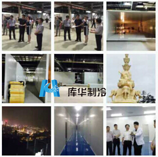 - 庫華制冷很榮幸成為達緣的建造一期、二期及現在正在施工的三期冷庫工程建造商。圖為為達緣第三期建造的食品冷庫設計安裝工程正在施工中及獲杭州市馬市長現場視察圖: